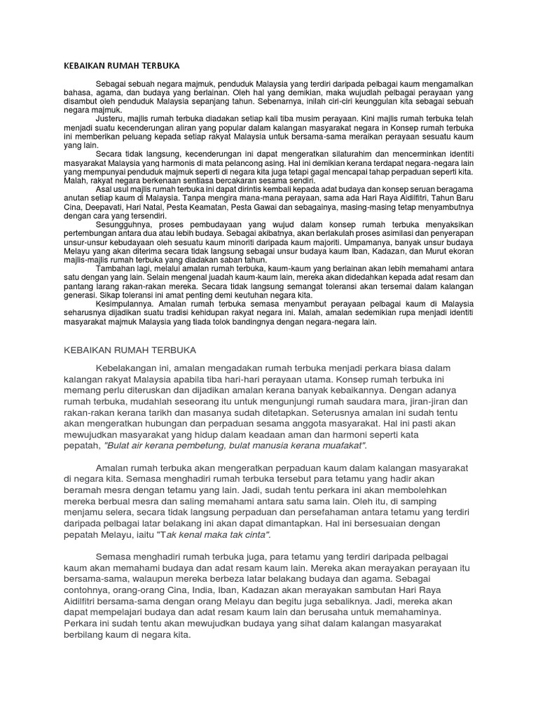 Doc karangan cemerlang spm kebaikan amalan rumah terbuka najat ruhi academia edu Pendek kata budaya dan adat resam kaum lain dapt dipelajari melalui amalan murni ini. Perayaan Kaum India Deepavali. Seterusnya melalui majlis rumah terbuka ini semua ahli dalam masyarakat berpeluang untuk berkumpul dan berbincang sambil menikmati juadah yang disediakan oleh tuan rumah.