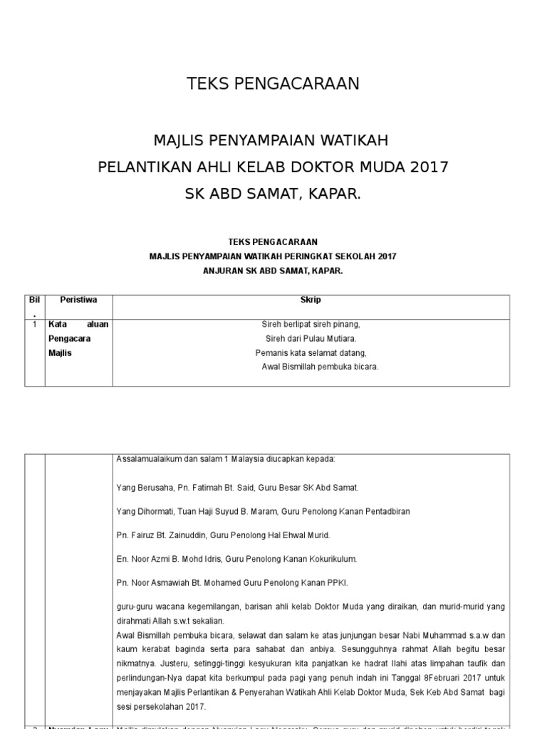 Teks Pengacara Majlis Watikah Pelantikan Pdf